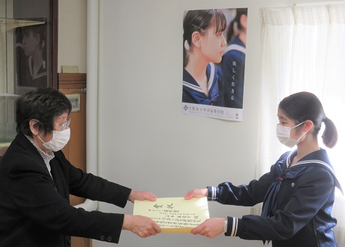 先日(7月14日)、中国黒龍江省ハルピン市の黒龍江大学から、王君林同窓会会長が本校を訪問してくださった。王さんは、本校のALT王先生のお父さんで、奥様も高知工科大学にご勤務されており、日本とはゆかりの深い方である。しかし最近はコロナの影響もあり、来日もままならず、2年ぶりの訪日とのことであった。土佐女子に来られたのはもちろん初めてで、せっかく来校してくださったので、南校舎1階から校内のすべてを見学していただいた。