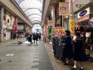 土佐女子の正面玄関前から、いざ帯屋町に向けてスタートです。